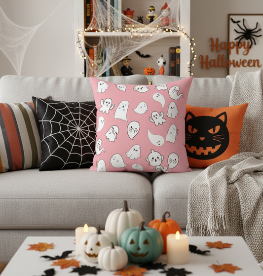 Cute Ghosts Spun Polyester Pillow, Halloween Decoration, Cozy Home Decor, Gift for Kids, Throw Pillow for Spooky Vibes