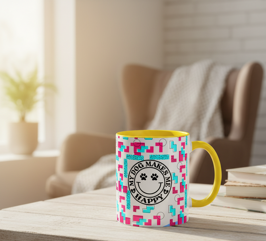 My Dog Makes Me Happy Coffee Mug | Cute Pet Lover Gift | Fun Accent Mug for Dog Owners | Colorful Dog-Themed Drinkware | 11oz, 15oz
