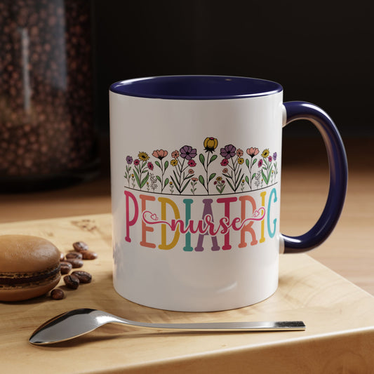 Pediatric Nurse Accent Coffee Mug - Floral Design, Gift for Nurses, Coffee Lovers, Medical Professionals, Cute Coffee Cup
