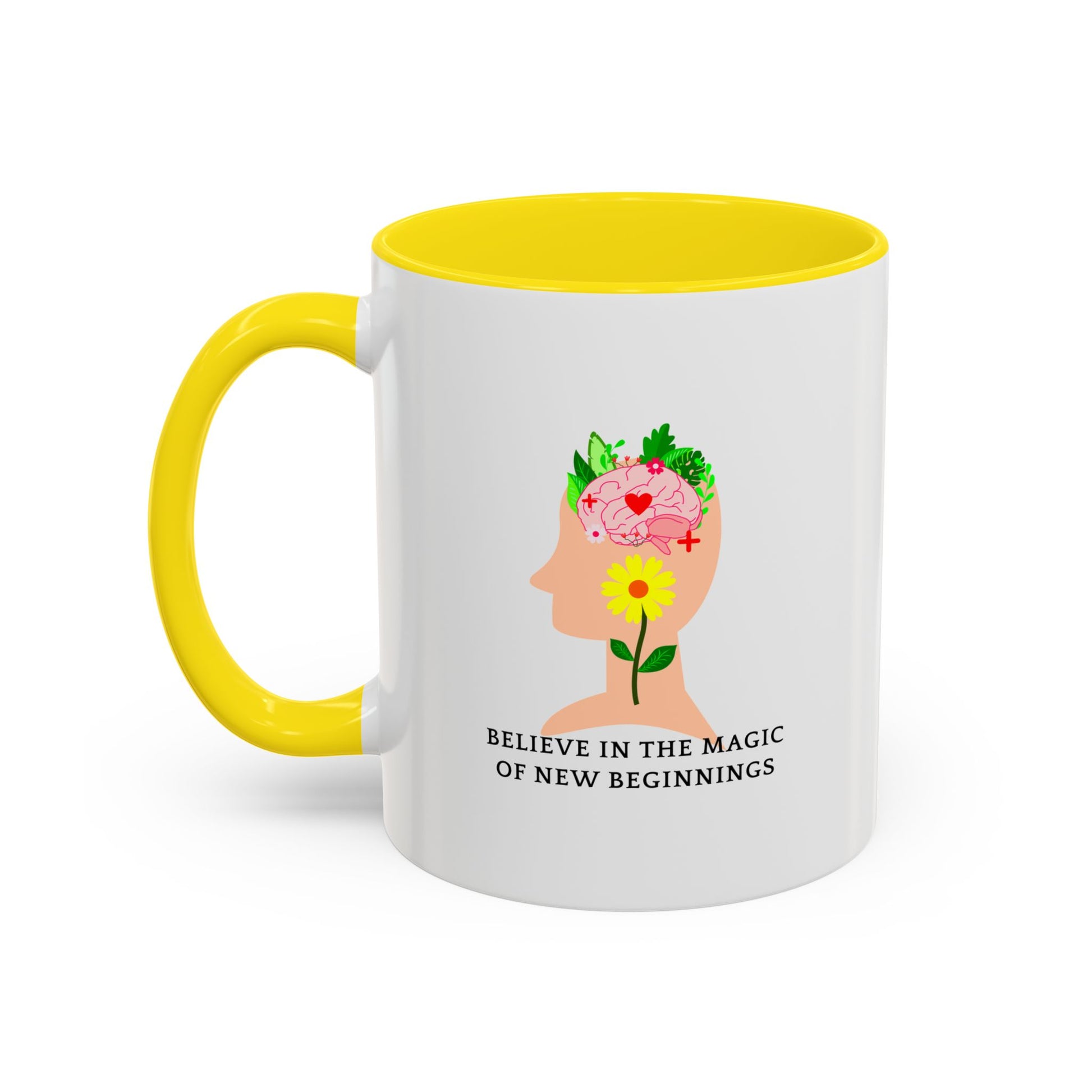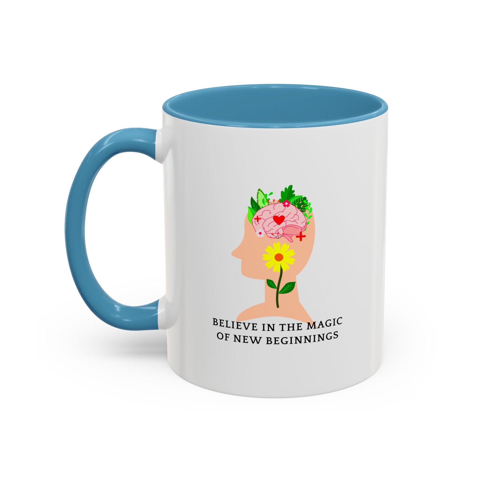 This beautiful accent coffee mug features the uplifting message 'Believe in the Magic of New Beginnings' - perfect for anyone embarking on a fresh chapter in life. Whether you're starting a new job, moving to a new city, or simply embracing positive change, this mug serves as your daily reminder that every day is a chance to begin again.