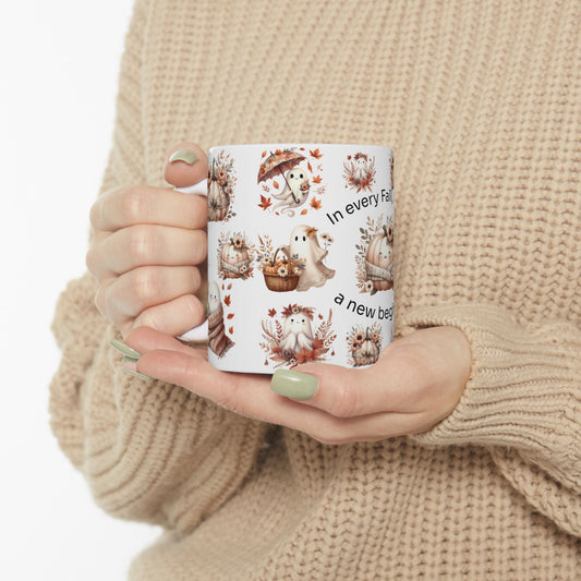 Autumn-Themed Ceramic Mug | Fall Coffee Cup, Seasonal Gift, Cute Drinkware for Cozy Days, Pumpkin Decor, New Beginnings